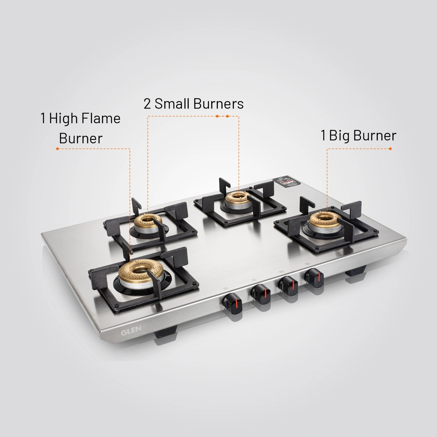 4 Burner Ultra Tuff Stainless Steel Gas Stove with Forged Brass Burner – Manual (1054 UT SS)- GLEN