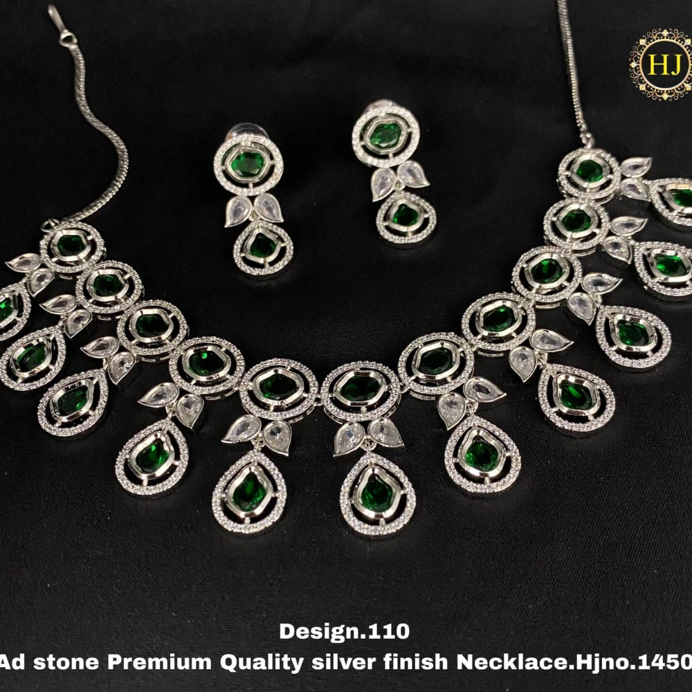 Premium AD Stone Silver Finish Necklace – HIRAL JEWELLERY