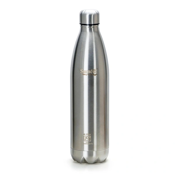 - Sumeet presents Double Walled Vacuum Stainless-Steel Flask which keeps water or beverages hot up to 24 hours or cold up to 24 hours as per the requirement. It’s condensation resist property ensures that the bottle does not sweat or leave behind wet rings on the surface.